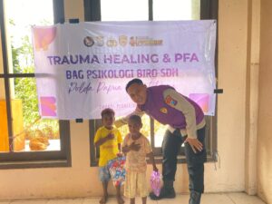 Tambrauw,Honaipapua.com, -Kepolisian Daerah Papua Barat Daya melalui Satuan Tugas Operasi Dofior Jaya terus menunjukkan kepeduliannya kepada masyarakat dengan menggelar kegiatan trauma healing di sejumlah kampung di Kabupaten Tambrauw, yakni Kampung Bano, Kampung Bamusbama, dan Kampung Bamuswaiman, Minggu (12/4/2026).